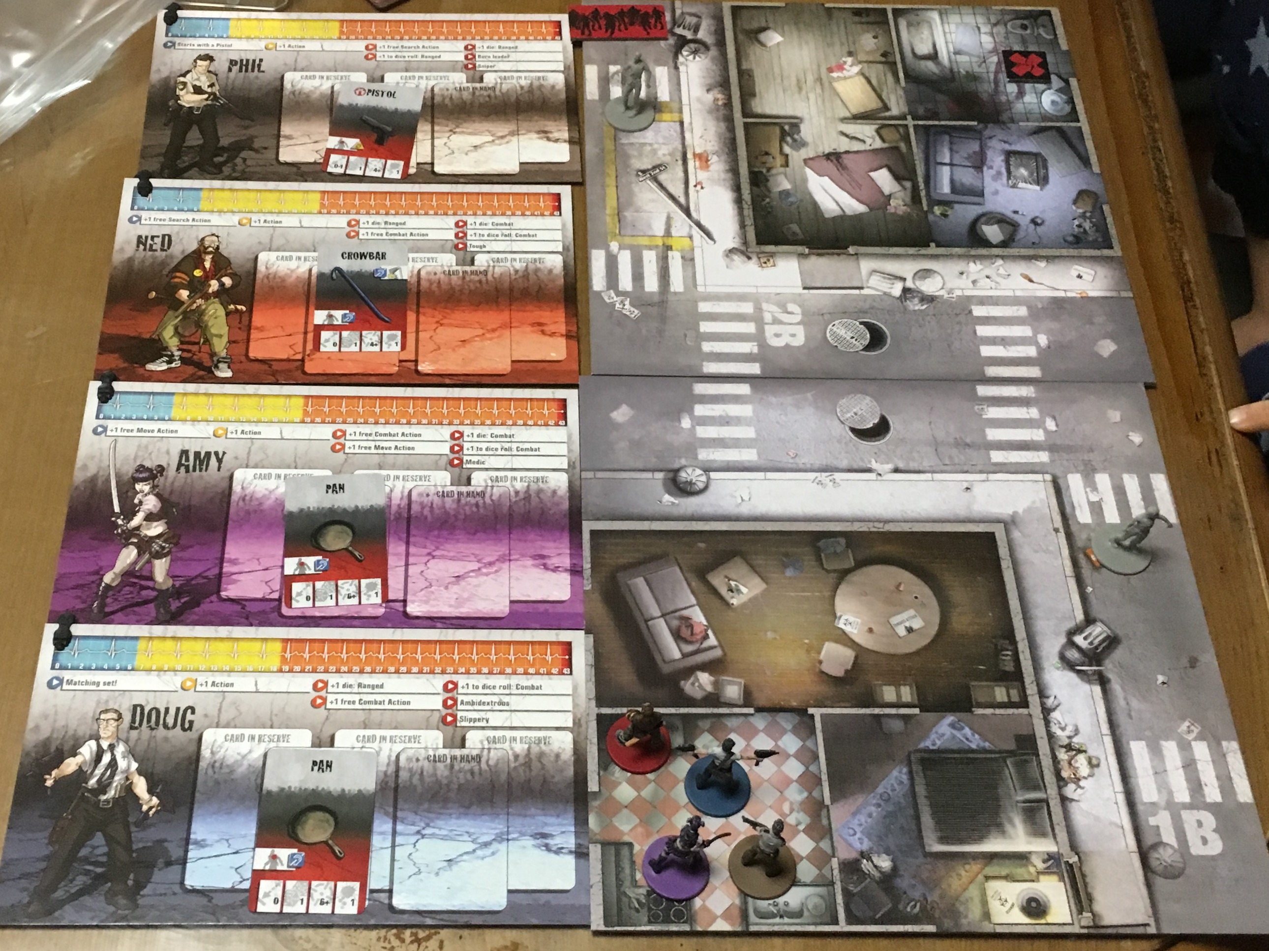 今回のチュートリアルプレイして思った事は、ゾンビと同じゾーンに仲間がいた場合、射撃武器でそのゾーンを攻撃すると仲間→ゾンビの順に攻撃が当たるルールが超厄介。