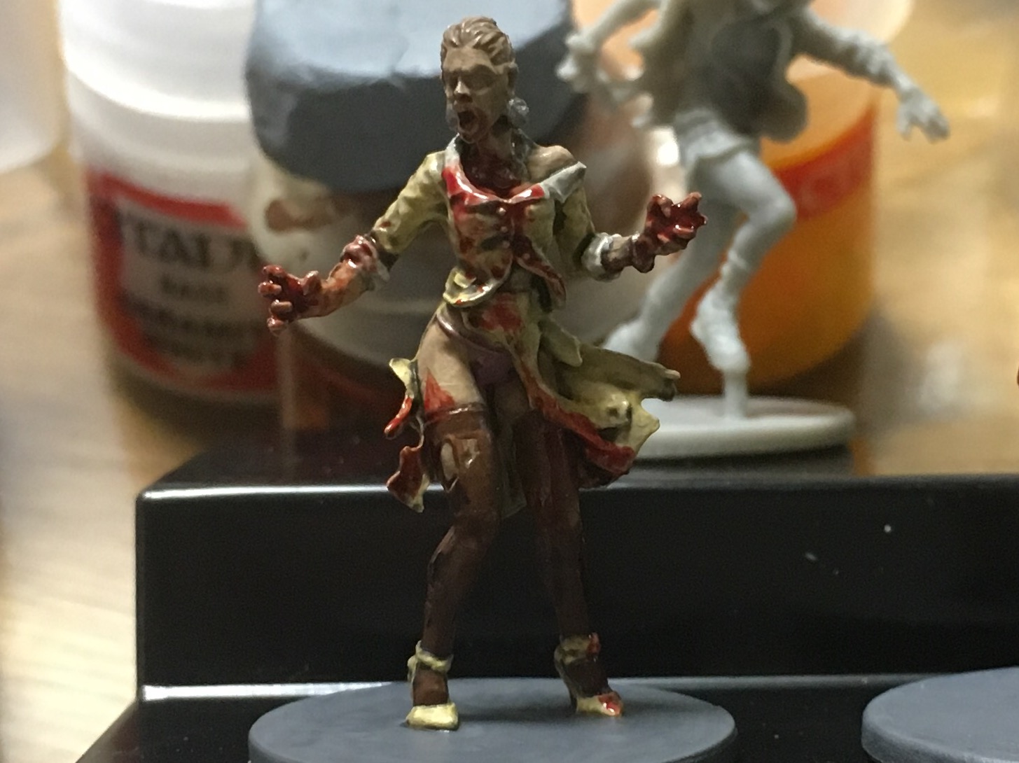 ベタ塗り→シェイド→ハイライト→血糊で、出来るだけスピード塗装を心がけた。これからの大量ゾンビ塗装に向けて、「塗装の速さ」はかなり需要なスキルになると思われます。