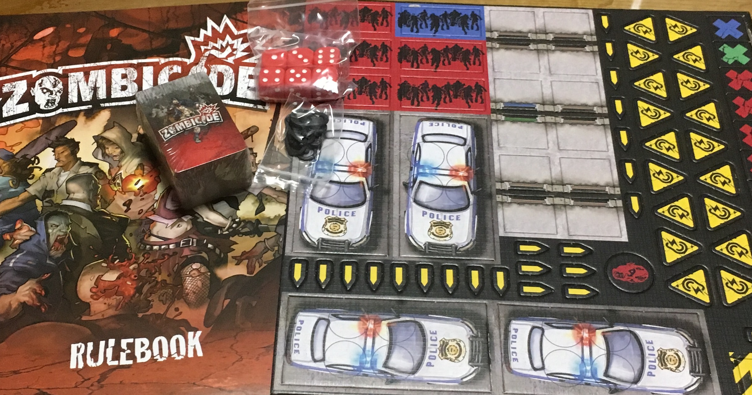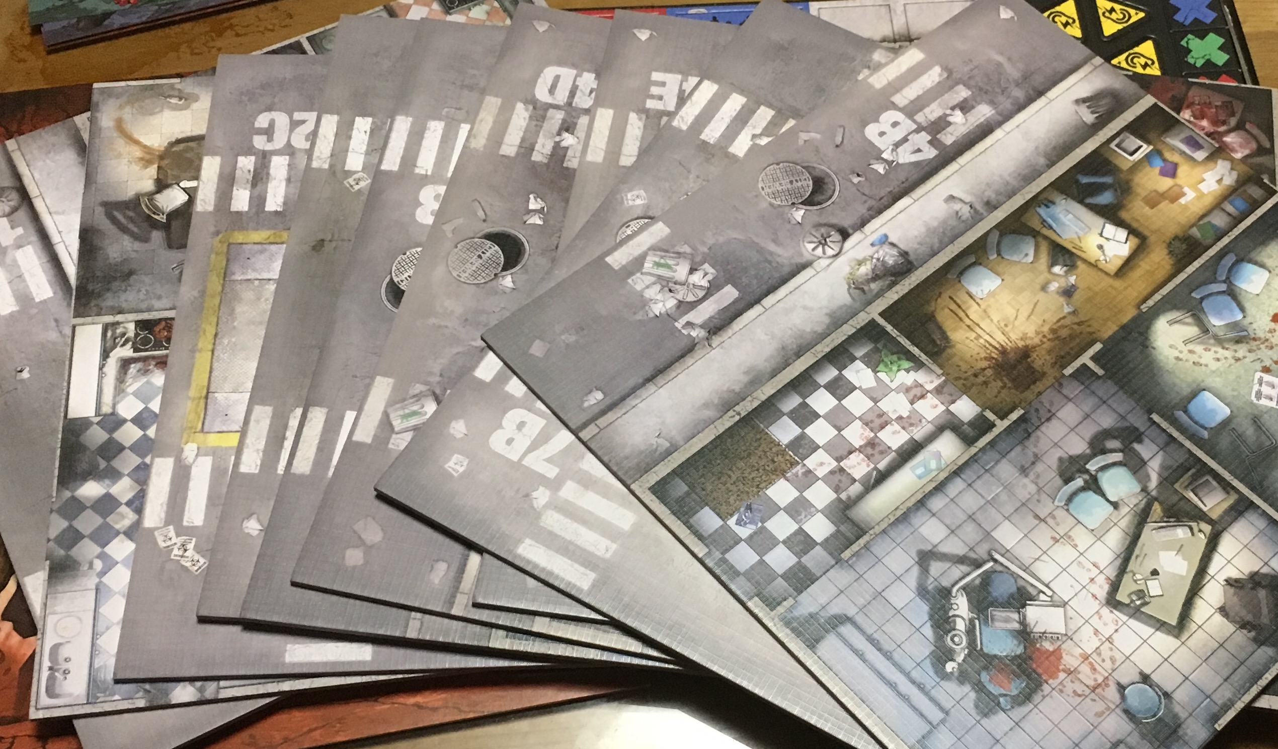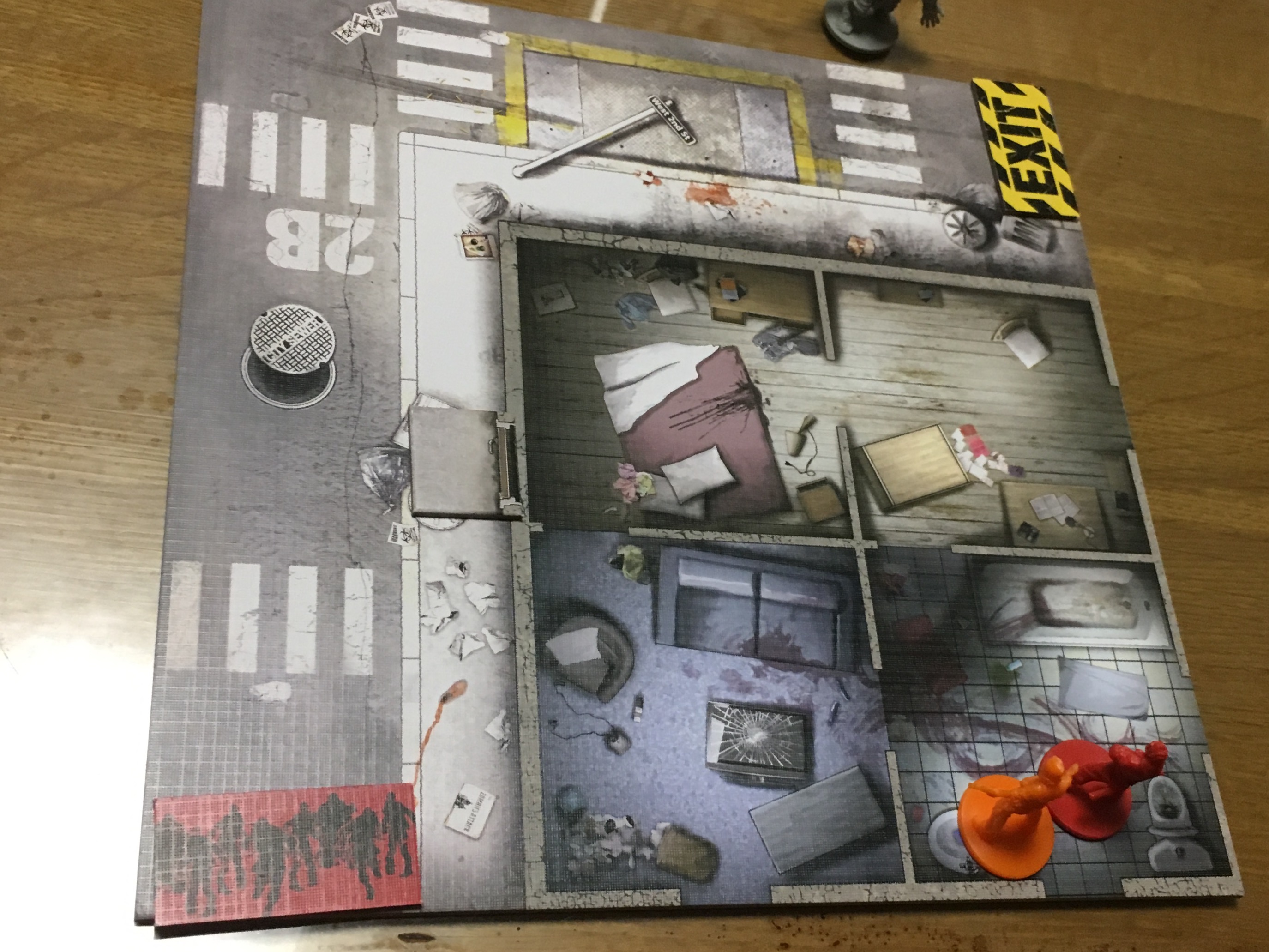 3歳の長男がベットの下に隠してたゾンビサイドの箱を見つけてしまい、「パパなにこれ?」と持って来たので「ゲーム」と答えると「一緒にやる!」と言い出して聞かないので、マップタイルひとつだけ使ってオリジナルチュートリアルプレイしました。