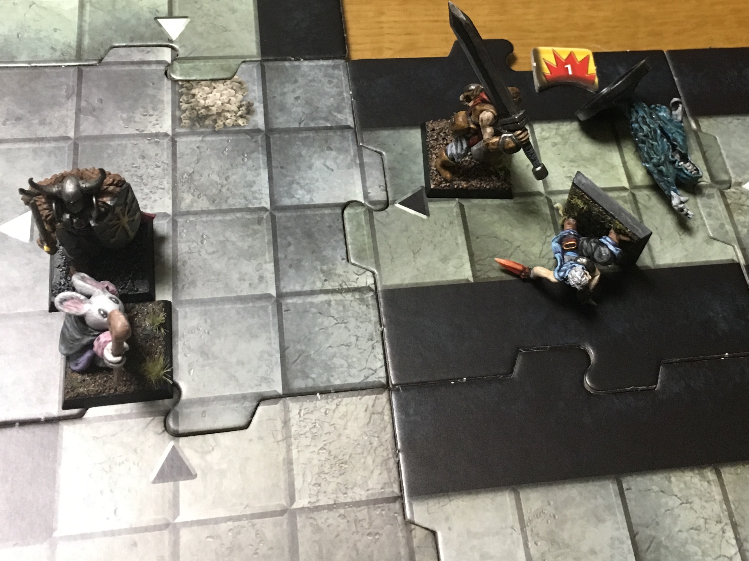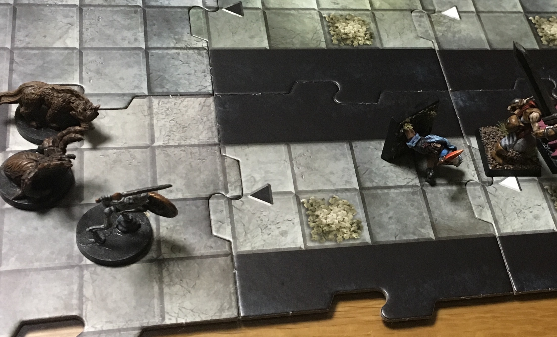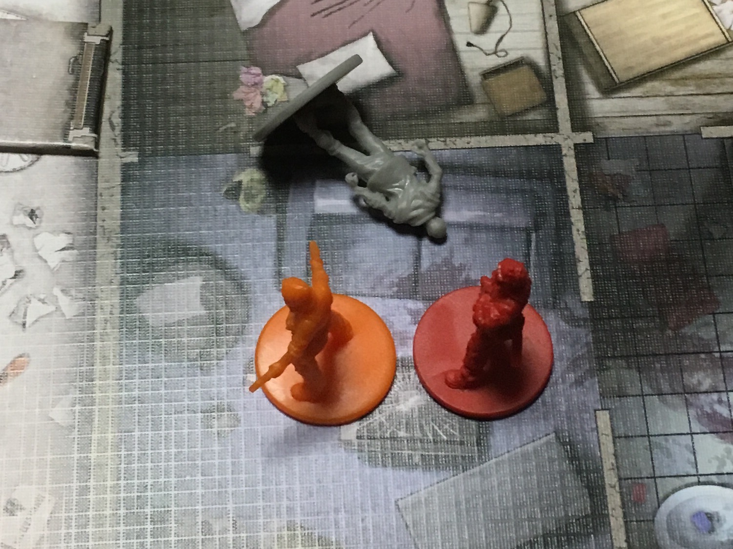 3歳の長男がベットの下に隠してたゾンビサイドの箱を見つけてしまい、「パパなにこれ?」と持って来たので「ゲーム」と答えると「一緒にやる!」と言い出して聞かないので、マップタイルひとつだけ使ってオリジナルチュートリアルプレイしました。